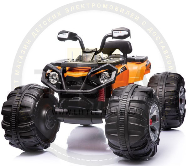 Лёгкий и вполне доступный вариант первого в жизни вашего ребенка квадроцикла. Возможно, именно это транспортное средство навсегда привьёт любовь к мототехнике. Именно поэтому, понимая всю степень ответственности, мы добавили в каталог эту бюджетную модель. В итоге, мы имеем пластиковые колёса с резиновой вставкой по центру, регулируемый по высоте руль с защитой рук, амортизаторы и каску в подарок.