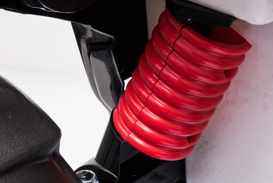 Резиновые колёса имеют лучшую амортизацию и производят меньше шума. При этом плотность резины позволяет ездить не опасаясь проколоть или порвать колесо.
