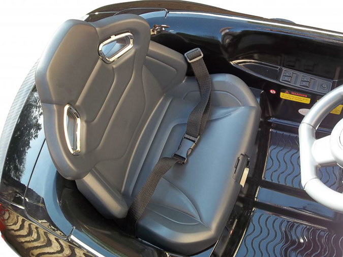 Пружинная подвеска обеспечивает плавный ход электромобиля по любой поверхности, а резиновые колеса не шумят во время езды.