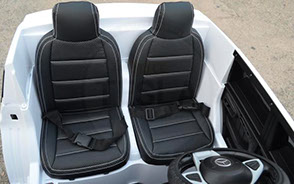 Пружинная подвеска обеспечивает плавный ход электромобиля по любой поверхности, а резиновые колеса не шумят во время езды.