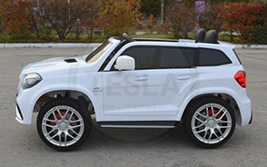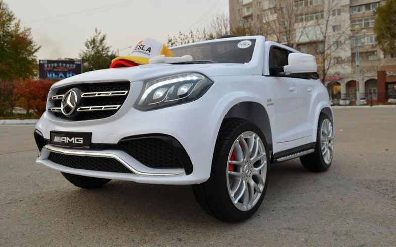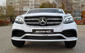Детский электромобиль Mercedes-Benz GLS-63, это мощь, комфорт, роскошь в детском формате. По-другому сказать про это чудо инженерной мысли пожалуй нельзя. Судите сами, ставшие привычные для премиум класса мягкие сидения из эко-кожи и мягкие резиновые колёса и пульт дистанционного упраления дополняются полным приводом, двумя аккумуляторами, аудиосистемой и кондиционером.