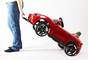 Средний вес детского электромобиля 20 килограмм и его довольно сложно переносить одному человеку. Для решения этой проблемы, все наши машины оснащены ручкой для удобного перемещения по принципу чемодана.